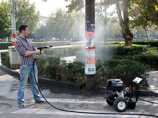 高压清洗机清洗路面小广告试用现场
