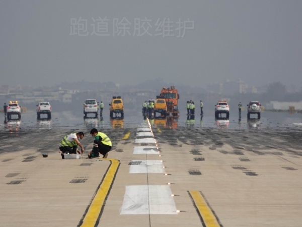跑道核心区:配备智能自适应压力的高压水射流跑道除胶机,精准清除不同厚度的橡胶层;
